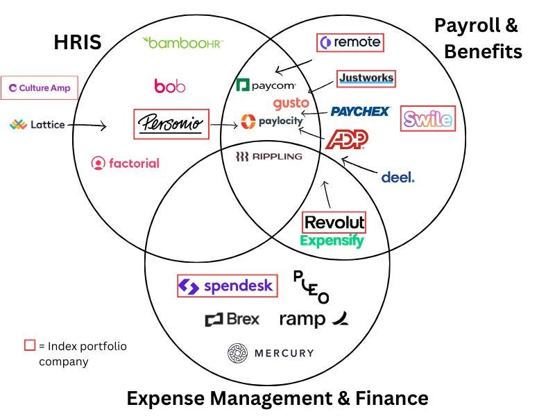 Take the back office space as an example. Point solutions are trying to transform into platforms to rebundle HR in response to vendor consolidation and pricing pressure. At the same time, existing platforms expand in adjacent spaces beyond their respective core functions.